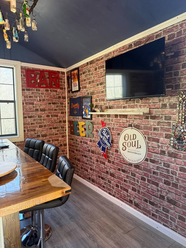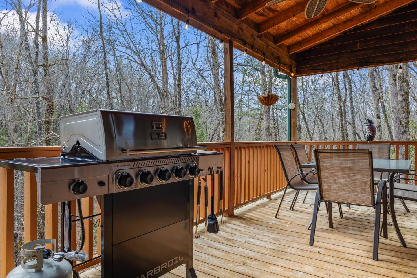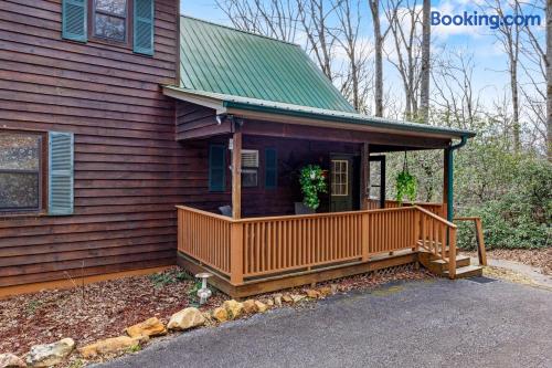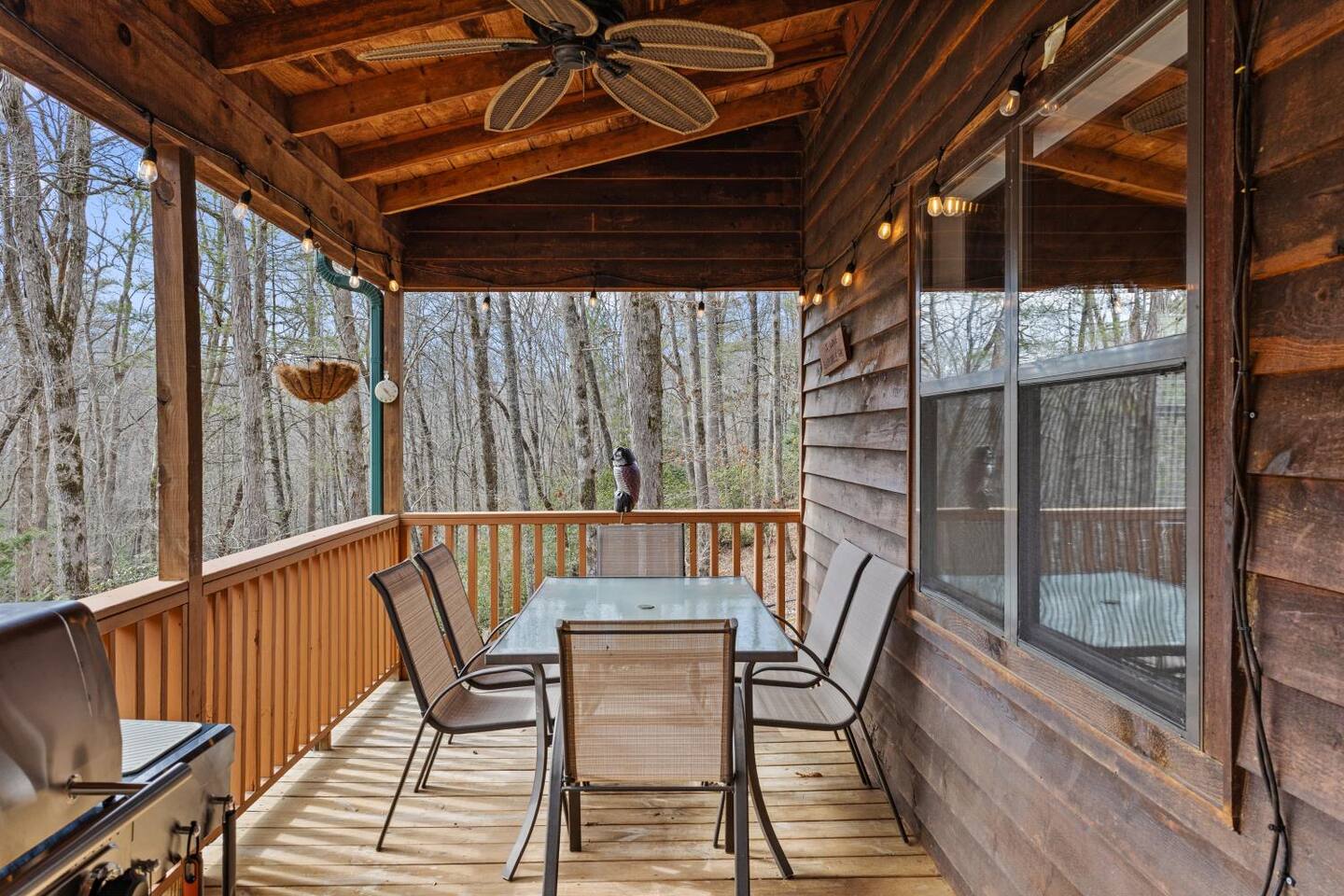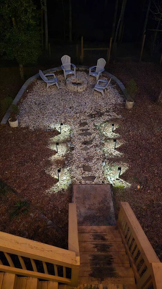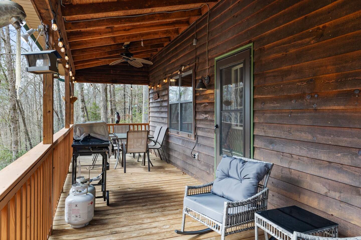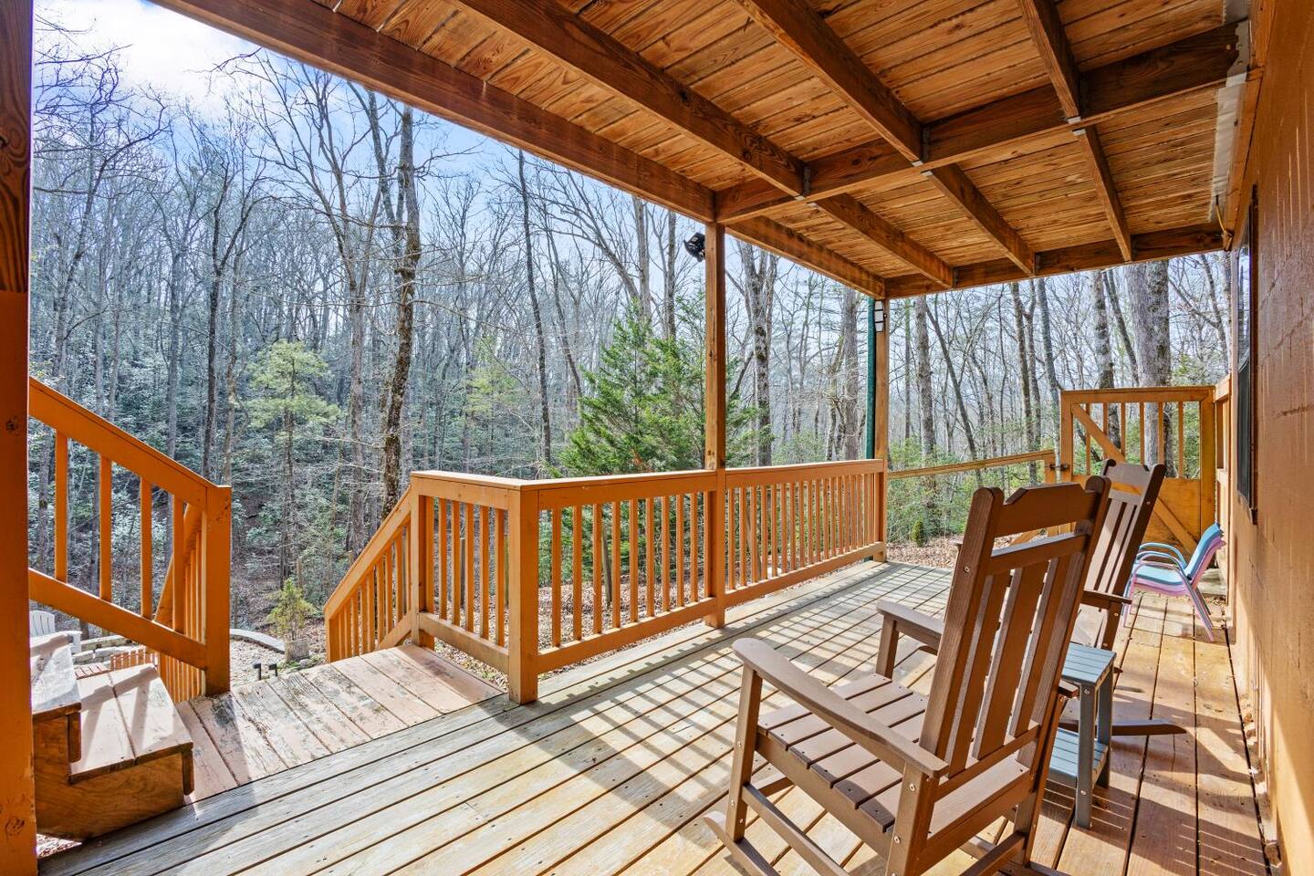 Slip away to a dreamy 3-level, pet-friendly cabin in Blairsville with a fenced yard, game room, theatre room, outdoor speakeasy, fireplace, and a small babbling creek. Sleeps 6 with 1 king, 2 queens, bunk beds, and a queen pullout. Easy paved access, private feel, and close to hiking, Blue Ridge, and Helen. Sleeping Layout 1 King • 2 Queens • Bunk Beds • Queen Pullout Sofa Living Room (Main Level) Light the wood-burning fireplace (bring your own wood), sink into the leather couches, and unwind after a day of hiking. Grab the dog blankets, leashes, and hiking poles and plan tomorrow’s trail while the fire crackles. Kitchen Fully stocked for real meals, not just snacks. Cook family dinners with the bakeware, cookware, air fryer, blender, and pizza stone. Start slow mornings at the coffee bar with Keurig, K-cups, cream, and sugar ready to go. Main Level Master + Bath King suite with soft, high-quality sheets, smart TV, and walk-in closet. End the night with a soak in the jetted tub or a hot shower with provided bath essentials. Upstairs Suite Queen bedroom with smart TV and full bath, perfect for a second couple who wants their own quiet perch. Lower Level Fun Zone Game room for tournaments and laughs with Pac-Man, air hockey, and table games. Theatre room for movie nights with pullout sofa, big screen, and popcorn machine. Bunk room stocked with books and toys for cozy kid hangouts. Queen bedroom and full bath nearby. Outdoor Spaces Sip coffee on the top deck, grill dinner, and listen for the small creek below. Rock on the lower deck while pups play safely in the fenced yard. Roast s’mores at the fire pit, then visit the hidden outdoor speakeasy with serving window and try to crack the code. Near Blairsville, 26 miles to Blue Ridge, 22 to Helen, and about 16 minutes to Brasstown Bald. 🥾 Hiker’s Dream Location Minutes from your stay, you’ll find some of North Georgia’s best trails. Vogel State Park (about 15–20 minutes away) offers 17+ miles of scenic hiking around Lake Trahlyta and through beautiful mountain forest. Just 25–30 minutes away, the Byron Herbert Reece Trailhead connects to the Appalachian Trail and leads to the summit of Blood Mountain — with multiple routes ranging from moderate to challenging. Highway 19 is packed with trail access, making this the perfect basecamp for waterfall hikes, ridge views, and unforgettable mountain adventures. 🌄
