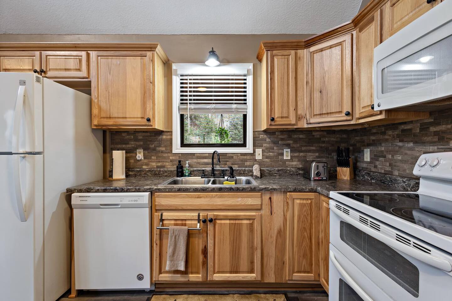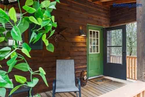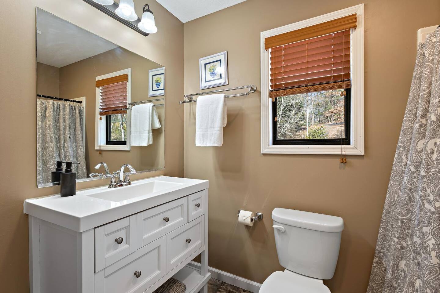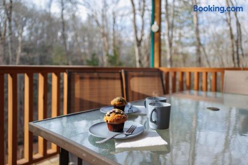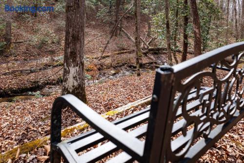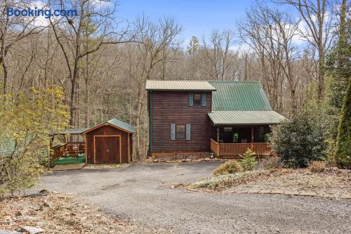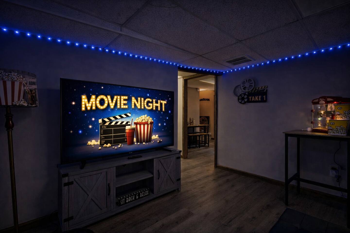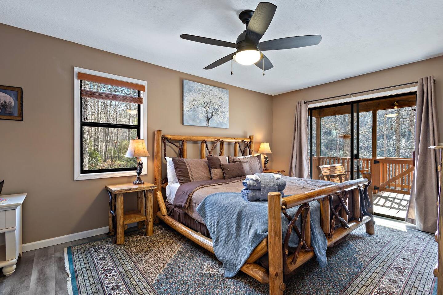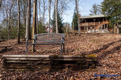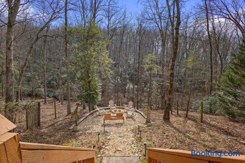 Slip away to a dreamy 3-level, pet-friendly cabin in Blairsville with a fenced yard, game room, theatre room, outdoor speakeasy, fireplace, and a small babbling creek. Sleeps 6 with 1 king, 2 queens, bunk beds, and a queen pullout. Easy paved access, private feel, and close to hiking, Blue Ridge, and Helen. Sleeping Layout 1 King • 2 Queens • Bunk Beds • Queen Pullout Sofa Living Room (Main Level) Light the wood-burning fireplace (bring your own wood), sink into the leather couches, and unwind after a day of hiking. Grab the dog blankets, leashes, and hiking poles and plan tomorrow’s trail while the fire crackles. Kitchen Fully stocked for real meals, not just snacks. Cook family dinners with the bakeware, cookware, air fryer, blender, and pizza stone. Start slow mornings at the coffee bar with Keurig, K-cups, cream, and sugar ready to go. Main Level Master + Bath King suite with soft, high-quality sheets, smart TV, and walk-in closet. End the night with a soak in the jetted tub or a hot shower with provided bath essentials. Upstairs Suite Queen bedroom with smart TV and full bath, perfect for a second couple who wants their own quiet perch. Lower Level Fun Zone Game room for tournaments and laughs with Pac-Man, air hockey, and table games. Theatre room for movie nights with pullout sofa, big screen, and popcorn machine. Bunk room stocked with books and toys for cozy kid hangouts. Queen bedroom and full bath nearby. Outdoor Spaces Sip coffee on the top deck, grill dinner, and listen for the small creek below. Rock on the lower deck while pups play safely in the fenced yard. Roast s’mores at the fire pit, then visit the hidden outdoor speakeasy with serving window and try to crack the code. Near Blairsville, 26 miles to Blue Ridge, 22 to Helen, and about 16 minutes to Brasstown Bald. 🥾 Hiker’s Dream Location Minutes from your stay, you’ll find some of North Georgia’s best trails. Vogel State Park (about 15–20 minutes away) offers 17+ miles of scenic hiking around Lake Trahlyta and through beautiful mountain forest. Just 25–30 minutes away, the Byron Herbert Reece Trailhead connects to the Appalachian Trail and leads to the summit of Blood Mountain — with multiple routes ranging from moderate to challenging. Highway 19 is packed with trail access, making this the perfect basecamp for waterfall hikes, ridge views, and unforgettable mountain adventures. 🌄