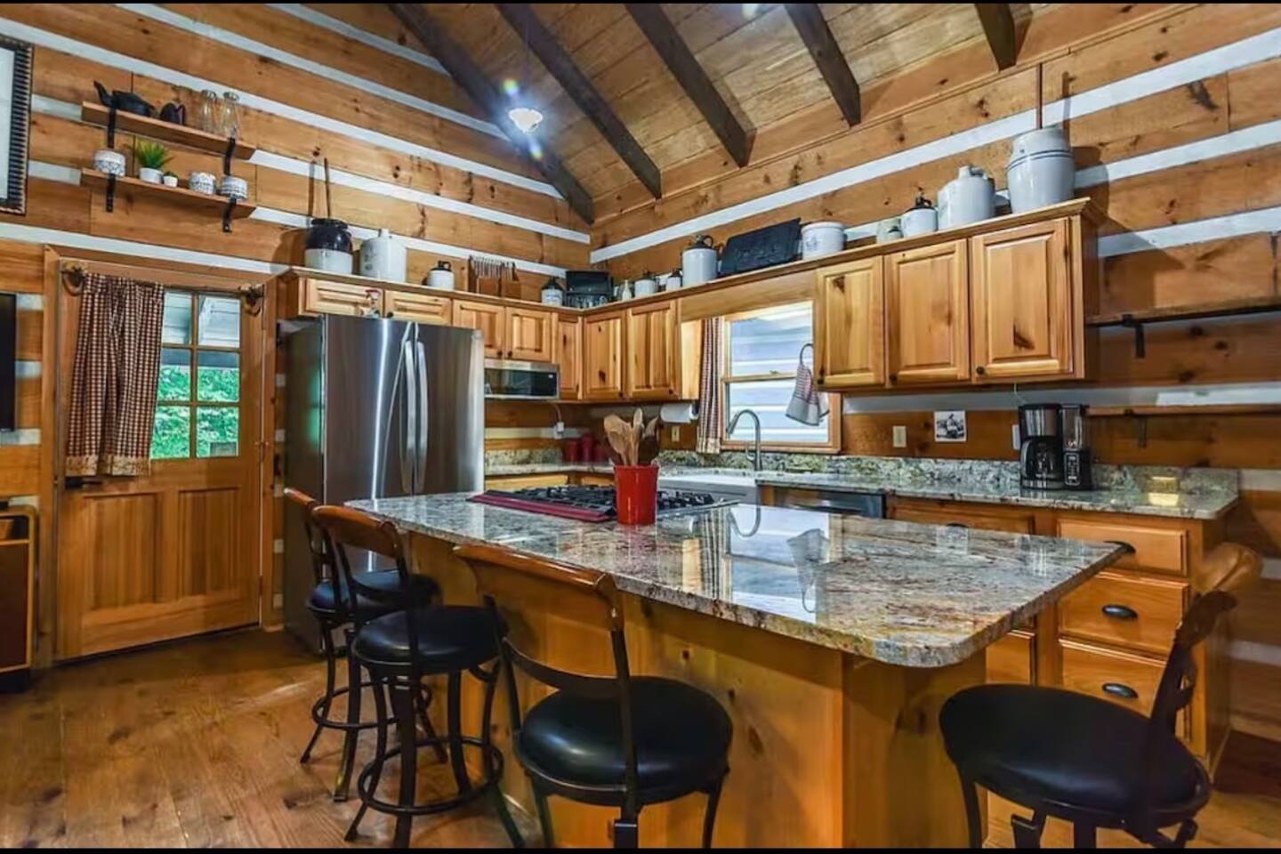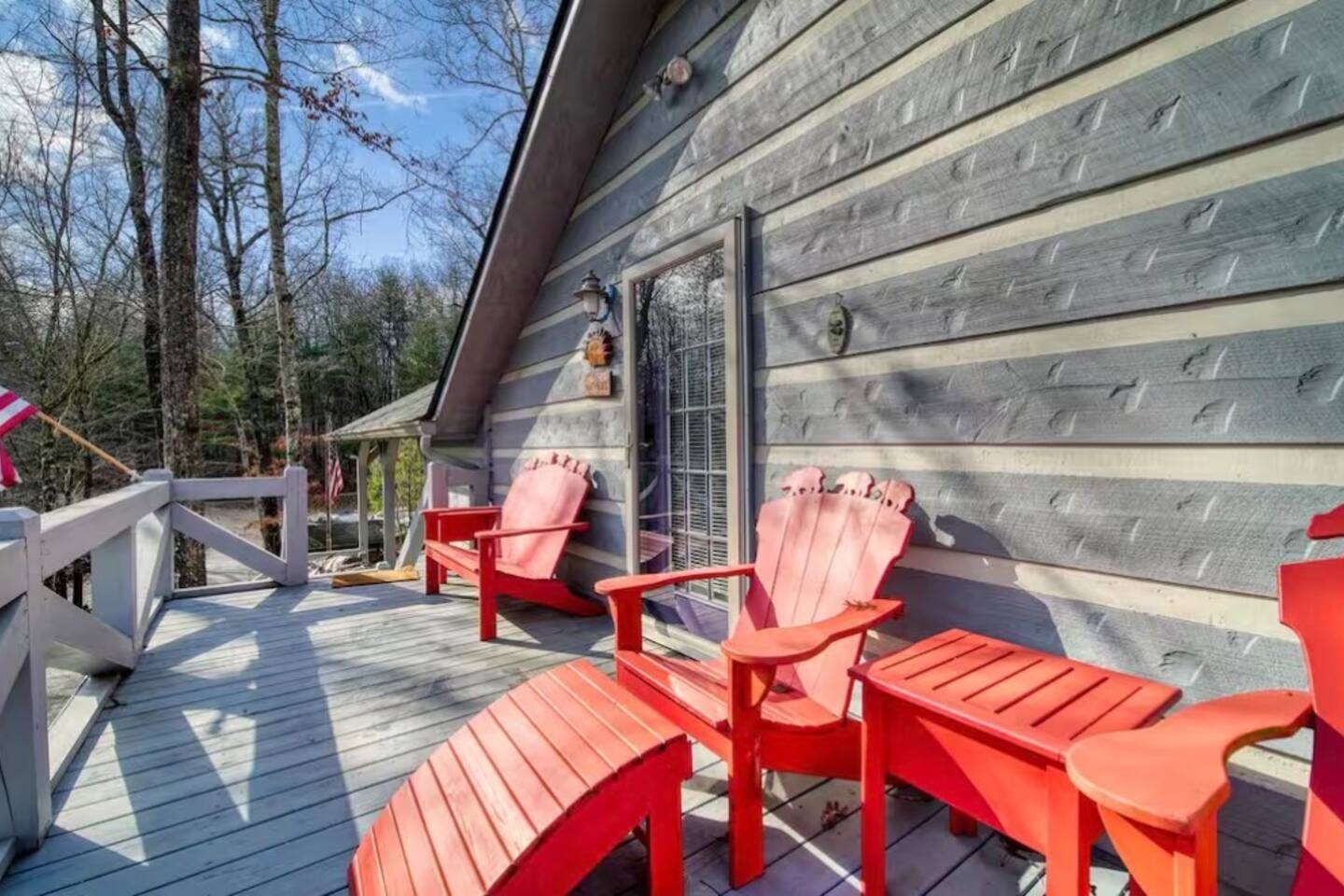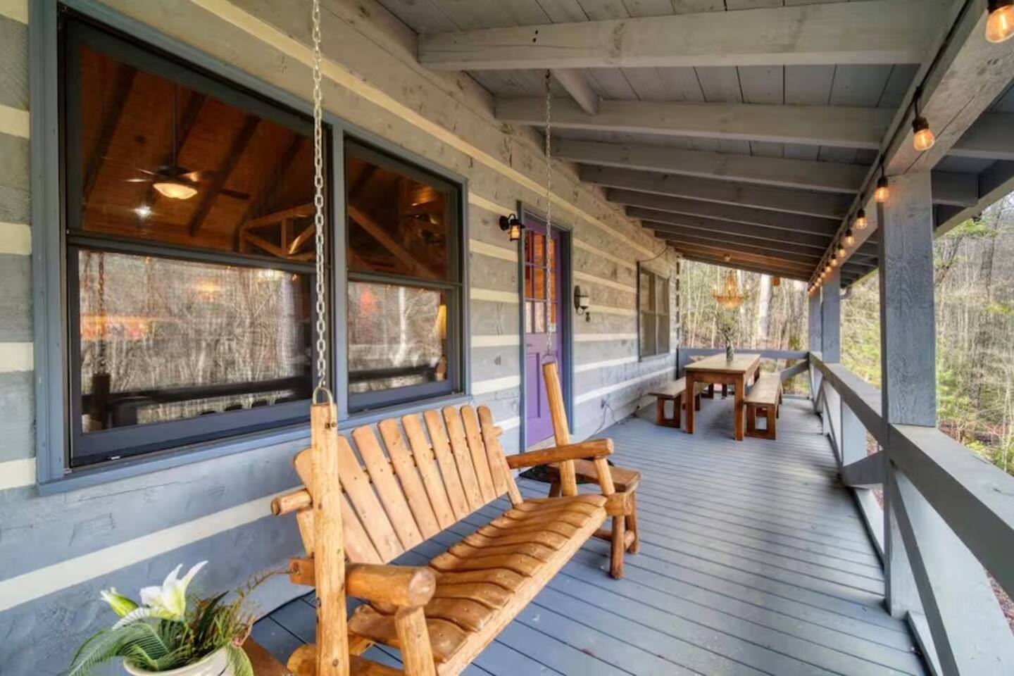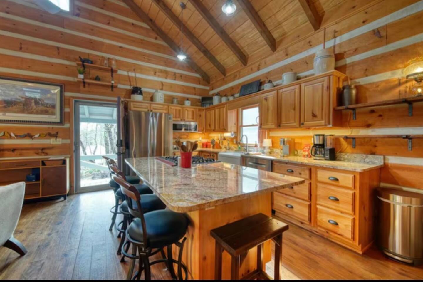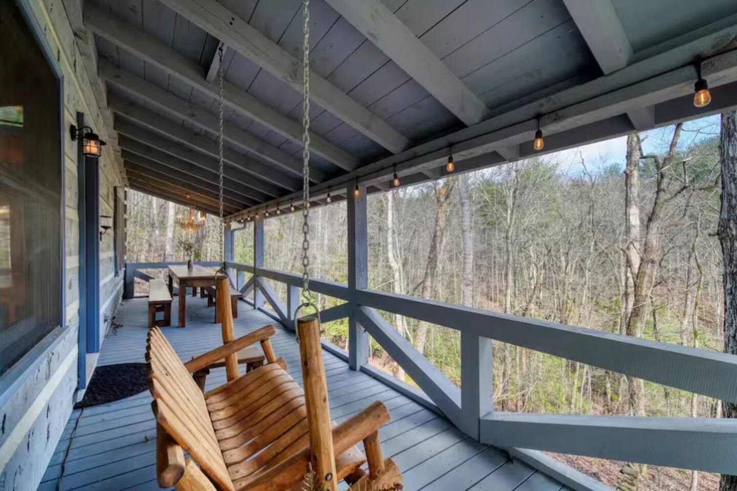 Welcome to Campfire Cabin, a spacious mountain retreat in the peaceful Aska Adventure Area, designed for families and groups who want room to relax, reconnect, and enjoy the outdoors. Set on a private 1-acre lot, this authentic wood cabin offers multiple decks, forest views, and cozy gathering spaces. Whether you’re soaking in the hot tub, sharing meals on the porch, or roasting marshmallows by the fire, Campfire Cabin is all about slowing down and enjoying mountain life. 🔥 Outdoor Living The outdoor space is where this cabin truly shines. The large fire pit area features plenty of seating, perfect for late nights under the stars telling stories and roasting s’mores. Firewood is included. The wraparound front porch overlooks the trees and features a porch swing and a large handcrafted wooden dining table with seating for 12, perfect for morning coffee or dinner with family and friends. Downstairs you’ll find a private hot tub deck tucked into the trees, the perfect place to relax after a day exploring Blue Ridge. The property also includes a fenced yard area for pets, grassy space to enjoy the outdoors, and parking for 2–3 vehicles. 🎮 Outdoor Games & Fun For some friendly competition, head to the game area in the garage with air hockey and foosball. There is also a ping pong table and basketball hoop under the covered parking area. Plenty of space to play, laugh, and enjoy time together. 🍳 Kitchen & Dining The kitchen was designed for gathering. It features a large island with gas cooktop, double ovens, granite countertops, farmhouse sink, and everything needed to prepare family meals. Enjoy both a Keurig and drip coffee maker, with coffee provided so mornings can start slow with a warm cup and mountain views. 🛋 Living Room The living room is warm and inviting with cathedral ceilings, comfortable leather seating, and a wood-burning fireplace. Firewood is provided so you can enjoy cozy evenings while watching your favorite shows on the smart TV. There is also a main level half bath for convenience. 🛏 Sleeping Spaces Campfire Cabin offers three spacious levels, perfect for large families or groups. Upstairs Loft Suite • King bed with luxury linens • Smart TV • Private full bathroom Downstairs Bedrooms • Two king bedrooms with luxury linens and smart TVs • Bunk room with full-size bunk beds Separate Queen bedroom suite with private entrance. ( not in the main house) • Queen Bed • Private bathroom and sitting area • separate outdoor sitting area Perfect for multiple families who want some privacy. 🚿 Bathrooms Bathrooms are stocked with body wash, shampoo, and conditioner to make packing easier. Laundry Room Washer and Dryer downstairs with starter laundry tabs. 🌲 The Campfire Cabin Experience With wraparound decks, peaceful forest views, outdoor games, and a fire pit made for gathering, Campfire Cabin is the kind of place where memories happen naturally. Morning coffee on the porch. Afternoons playing games with family. Evenings soaking in the hot tub. Nights around the fire under a sky full of stars. Peaceful, spacious, and designed for groups, it’s the perfect mountain escape just 27 minutes from downtown Blue Ridge.
