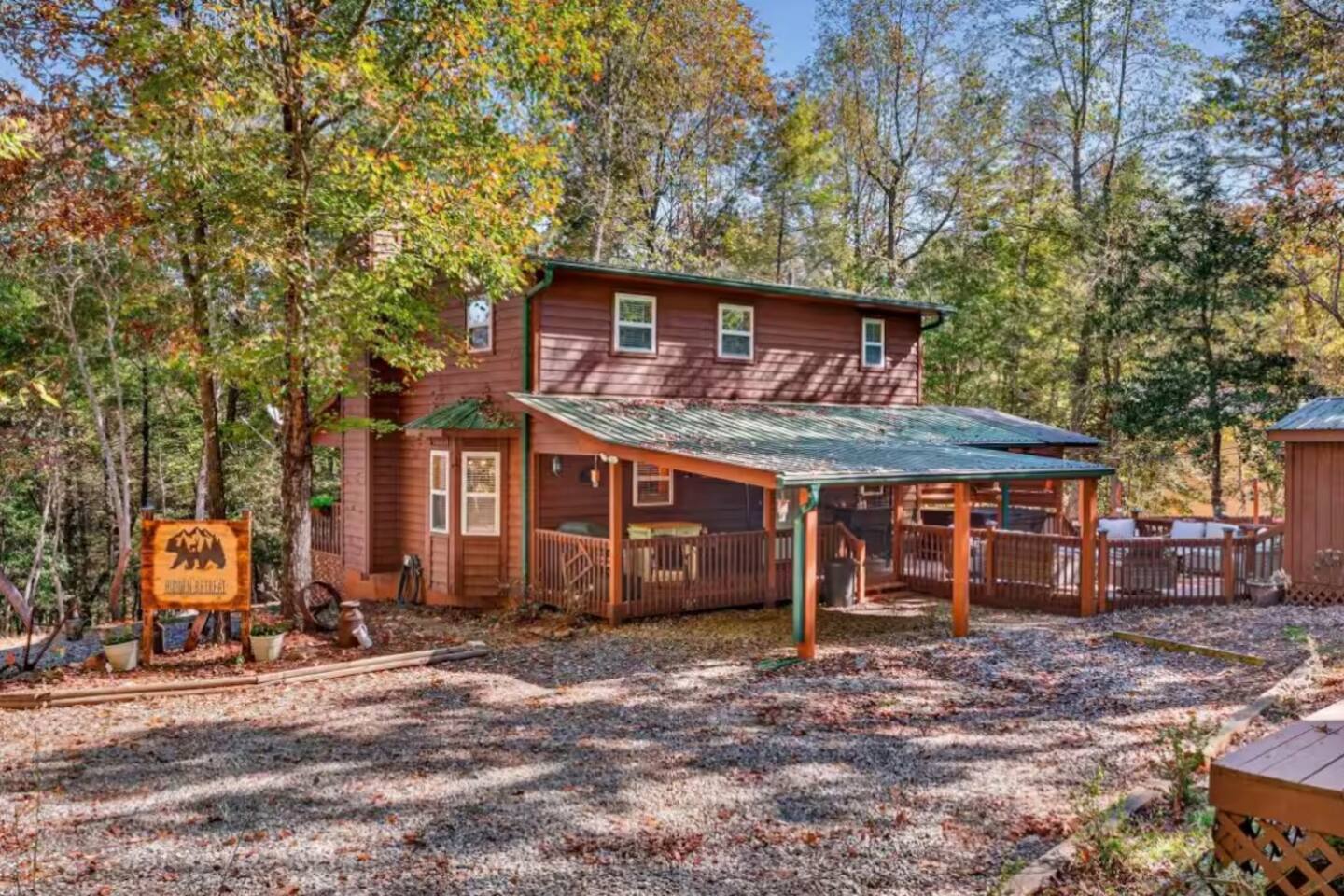 Escape to Hidden Retreat, a private log cabin tucked on a peaceful 1-acre mountain lot just 15 minutes from downtown Blairsville. Perfect for families, couples, or a relaxing mountain getaway. Outside • Private deck with hot tub • Gas grill & outdoor seating • Deck tic-tac-toe game • Rope swing & large yard • Fire pit with 6 chairs (starter wood included) • Outdoor table & chairs Living Room • Leather couches • Gas fireplace • Large TV & floor fan Kitchen • Fully stocked kitchen • Keurig Coffee Maker (coffee & hot chocolate provided) • Pots, pans, dishes, glasses & Tupperware • Crockpot & toaster • Bar seating for 2 Dining Area • Table seating for 4 Bedroom 1 (Main Floor) • Queen bed with luxury linens • Dresser, iron & ironing board • Pack-and-play & high chair • 55” TV • Towels for hot tub Bathroom 1 • Shower/tub combo • Towels, shampoo, conditioner & body wash Upstairs Bedroom 2 • Queen bed with luxury linens • Extra pillows & fan • 55” TV Bathroom 2 • Shower/tub combo • Towels, shampoo & body wash Loft • Kids teepee, books, games & toys • Pullout couch (sleeps 2) • Large TV Nearby Adventures • Brasstown Bald – 20 min • Vogel State Park – 15 min • Helton Creek Falls – 20 min • Mercier Orchards – 35 min Local Favorites Jim’s Smokin Que • The Sawmill Place • Cabin Coffee Co 🛒 Grocery store only 11 minutes away