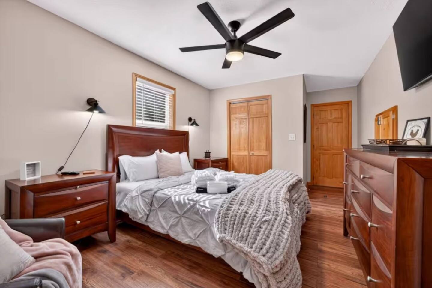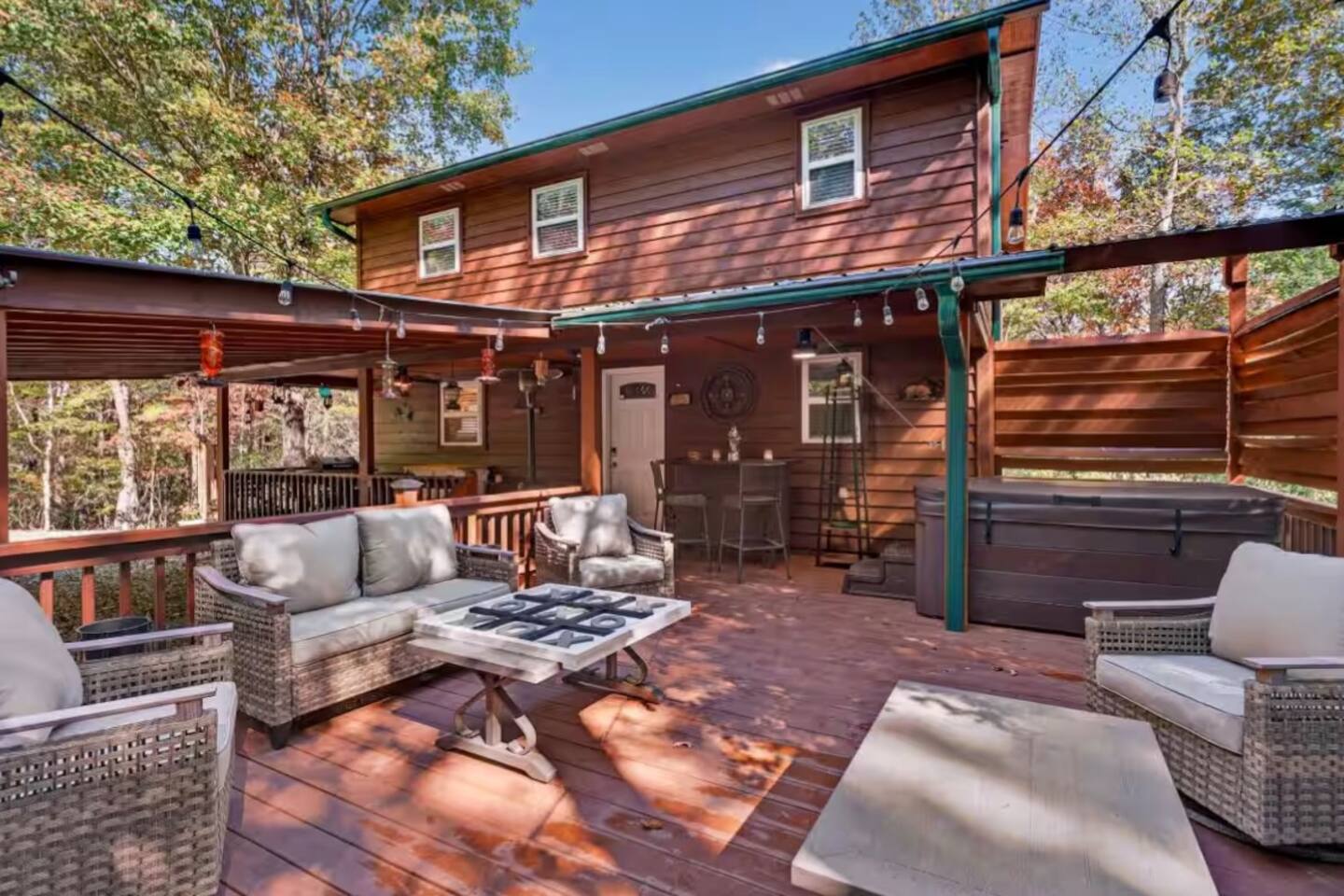 Hidden Retreat is a cozy 2BR/2BA cabin on a private 1-acre lot just 15 minutes from downtown Blairsville. This 1,330 sq ft mountain getaway sleeps up to 6 and offers space to relax and play. Features: • 2 Queen beds + pullout couch • Private hot tub deck • Gas fireplace • Fire pit (starter wood included) • Grill • Fully stocked kitchen • Kids teepee & toys • Rope swing & large yard • Deck tic-tac-toe game • Parking for 4 cars Near Brasstown Bald, Vogel State Park & Helton Creek Falls.